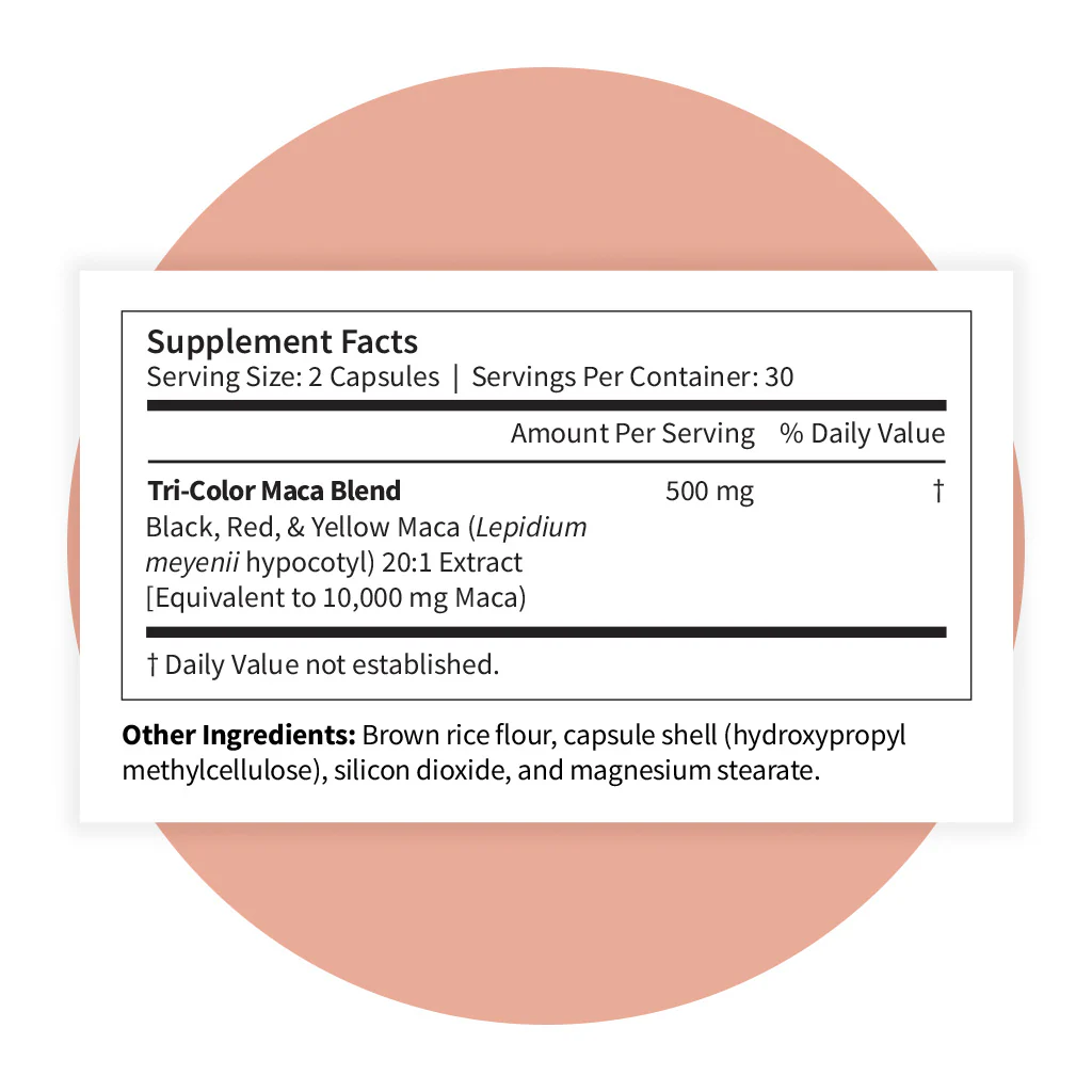 Directions: Adults taking Maca Root should take 1 capsule twice daily with food.