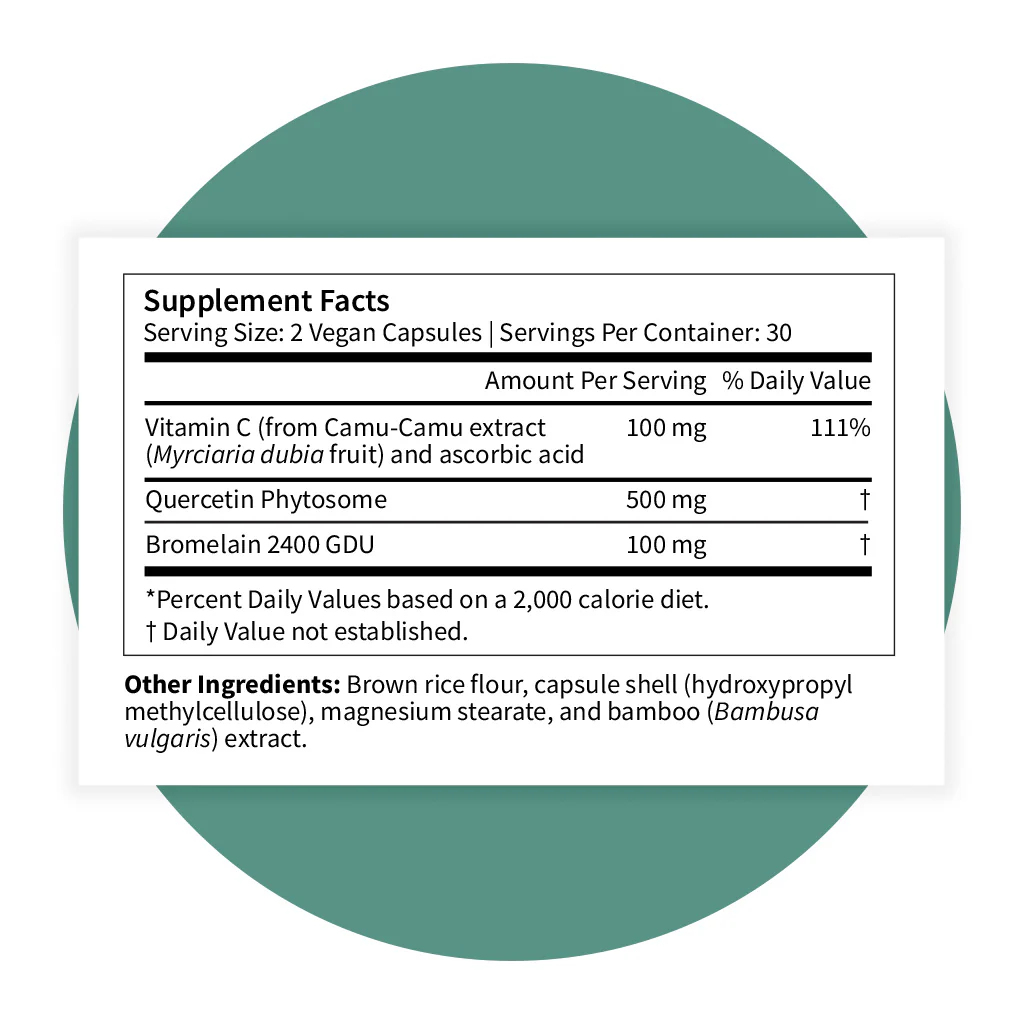 This 500mg Quercetin formula is made with Bromelain from Pineapple stems, Vitamin C, and Camu Camu Extract to provide a wide range of benefits from cellular health and immune health, to inflammation relief. Quercetin has therapeutic benefits for cardiovascular health, cholesterol health, and normal respiratory function.