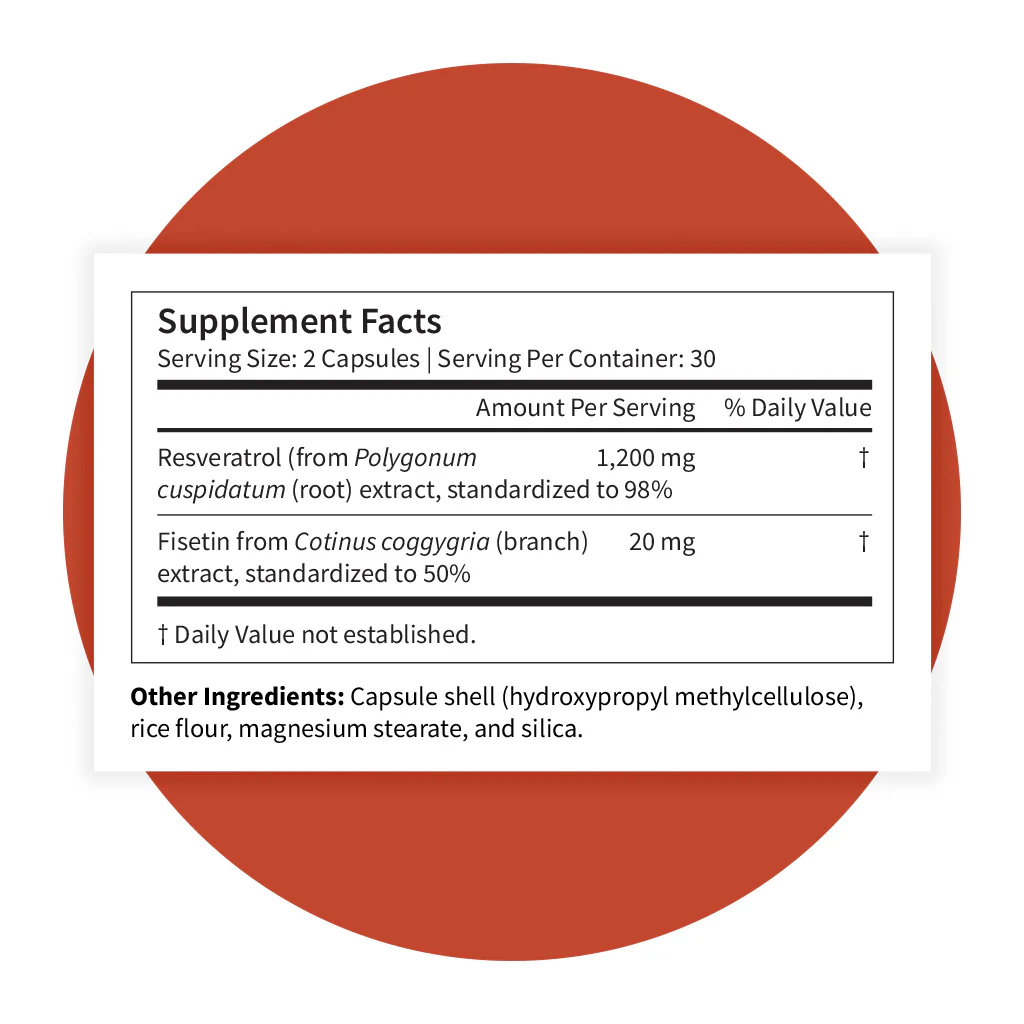 Our formula is crafted with premium Trans-resveratrol, the most biologically active form of resveratrol, and Fisetin, to fight against oxidative stress and encourage healthy inflammatory responses. Resveratrol is perfect for promoting a healthy immune system!Â